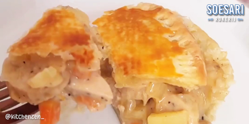 9. Chicken Sausage Pot Pie With BBQ Sauce siap dihidangankan untuk cemilanmu!