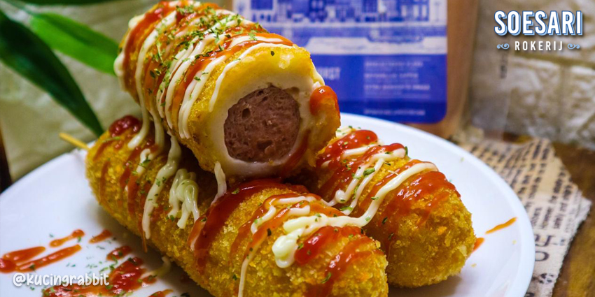 Chewy Sausage Corndog siap di sajikan