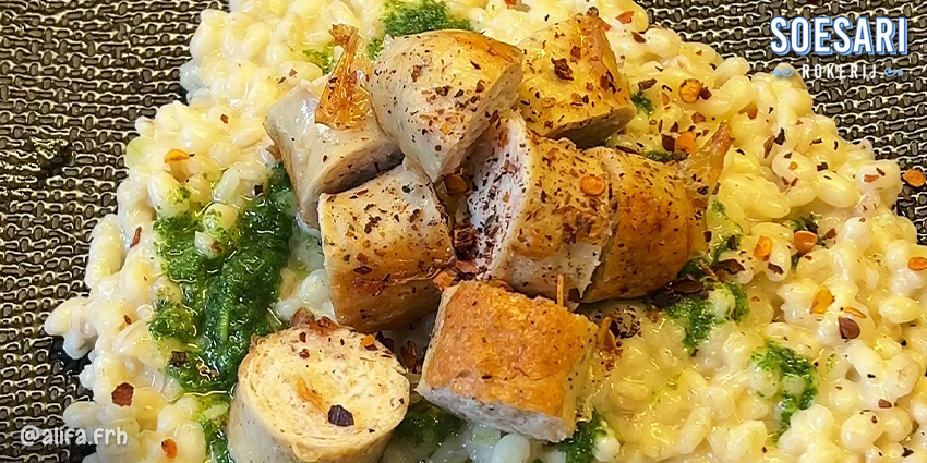 12. Pearl Barley Risotto with Sausage siap untuk disajikan!