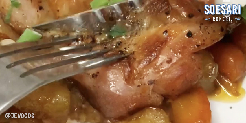 1. Panaskan ayam asap Soesari Rokerij, sisihkan.