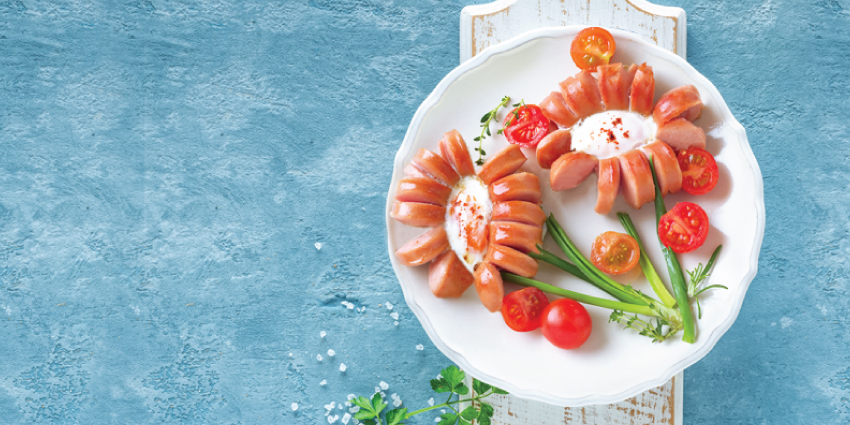 Roll up the sausage like a circle (join both ends of the sausage) and fix it with two toothpicks