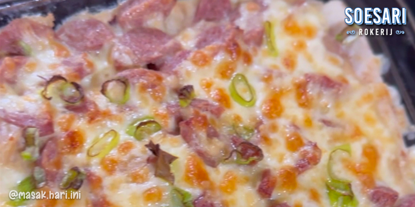 • Sebelum dipanggang, beri taburan keju mozarella dan daun bawang