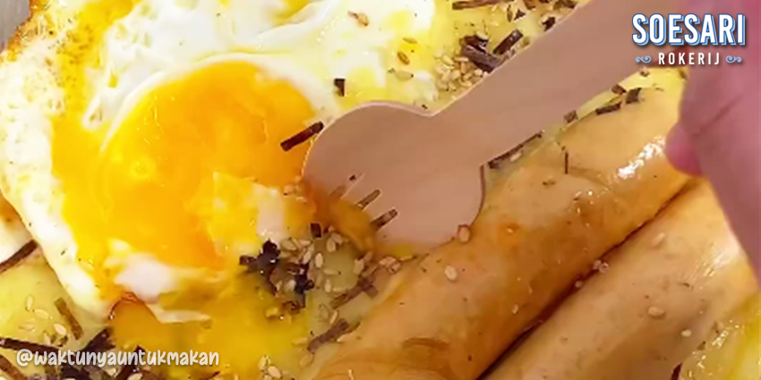 • Masak Sosis Ayam Keju telur hingga matang di atas teflon hingga matang